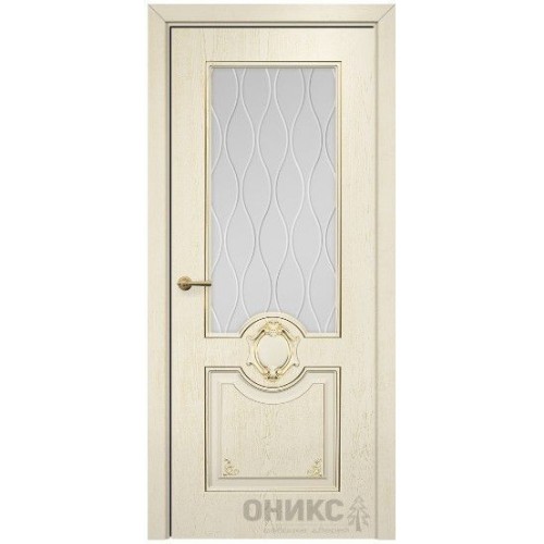 Межкомнатная дверь Оникс Рада с декором Слоновая кость эмаль патина золото cтекло с гравировкой со стеклом